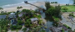 The April 2018 flood event that impacted Kauai had a devastating effect on Hanalei Beach. Severe fluvial impacts included drainage damage in the backshore and on the beach from Black Pot Beach Park to the south side of Hanalei Pier in Kauai. Drainage channels were cut deep into the sandy coastal plain and extended through the dune, dry berm, and active beach face. Much of the sand that was excavated from the backshore and beach was deposited in the nearshore waters, makai of the drainage channels. This sand formed a broad deltaic sand deposit which was exposed during most of the tidal cycle. This created a significant change between typical conditions and post-flood conditions along the coastline.